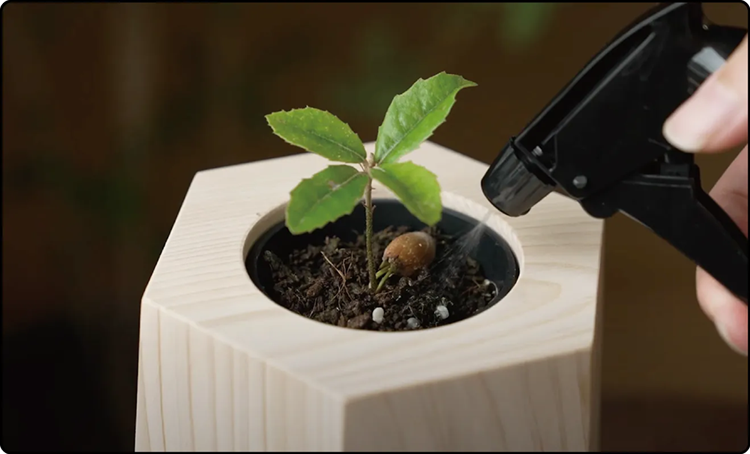 自宅や学校、オフィスでどんぐりから苗木を育て、その苗木を約2年後に山に植林します。植えられるのは、崩れやすくなった災害リスクのある山林。あなたが育てた苗木がそこに根を張り、、やがて森の一部となり、命を育み、森を豊かにしていきます。