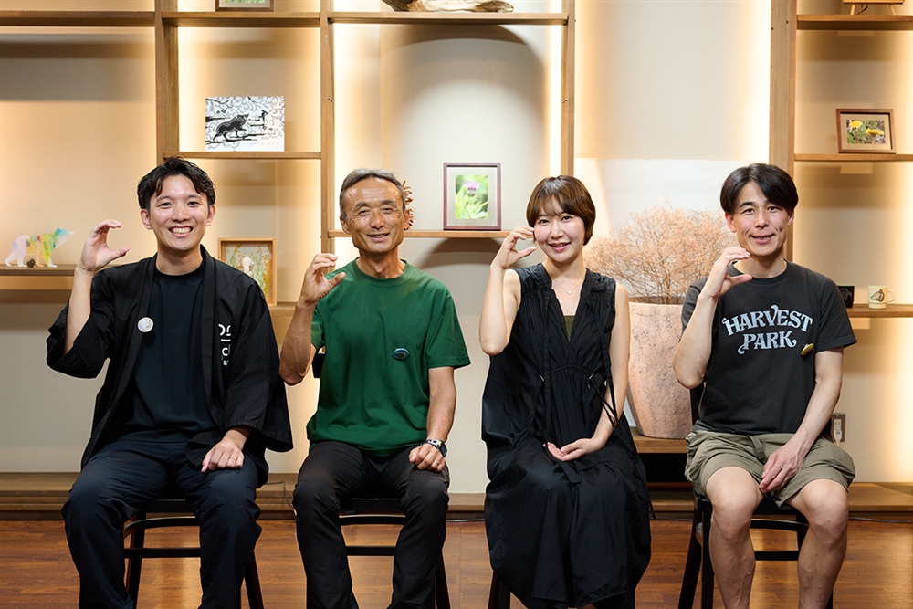 左からconomichiプロデューサーの吉澤克哉、「ユウスゲと貴重植物を守り育てる会」ならびに「霊峰伊吹 山の会」代表の高橋滝治郎さん、「日本草木研究所」主宰の古谷知華さん、「ハーチ株式会社 Livhub(リブハブ)編集部」の石塚和人さん。