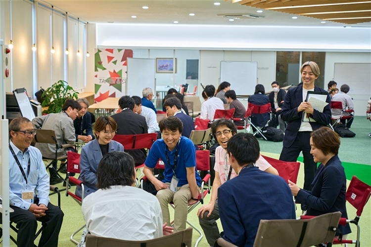 岩田:僕は、あまり「課題解決」という言葉は好きではないんですよ。マイナスを埋めるというよりは価値創造がしたいと思っているし、プラスアルファのことをやりたいと思っています。 実はこのタキビコも、最初は単純にアトツギとスタートアップがもっと仲良くなったら良さそう、くらいしか考えていませんでした。なので、在庫を置いていたオフィスの一角になんとかスペースをつくって、交流イベントを開催したというのが小さな始まりです。 ただ、回数を重ねていよいよ本格化というときになって、タキビコとは「事業承継が進まない」という社会課題と、「スタートアップが生まれない」という社会課題、この2つの社会課題をまとめて解決するプロジェクトなんだと気がついたんです。混ぜるな危険の逆で、「混ぜないと危険!」って感じですね。