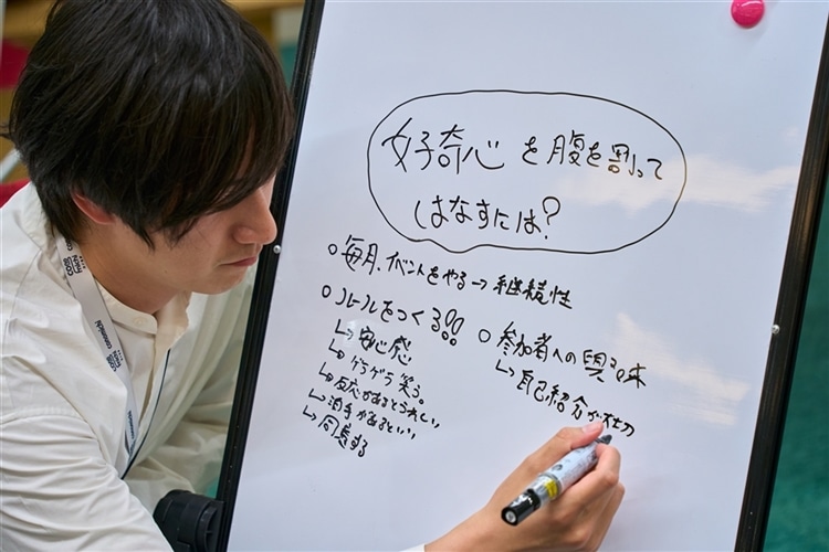 原田:細田さんは、みんなが集まってアイデアを話すような場ってなかなか職場にはなく、かといって大学に通い直したりすることはハードルが高いというジレンマを抱えているなかで、皆さんどこか違う場所を求めているのだということを話されていました。言葉を選ばずに言うと、「突拍子もないことを言うヤツと思われたくない」という気持ちが強くあるということ。その話に僕自身、我々がターゲットとして想像していたよりも、もう2歩くらい手前にいる人たちこそがコミュニティを求めていて、守られたなかで段階を踏んで、アイデアを形にし、プロジェクトにたどり着くのだろうという発見がありました。