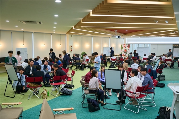 7~8人でグループをつくり、グループごとに「好奇心をどうやって腹を割って話すか、どんな場所にしてほしいか」を題材にディスカッションをスタート。終了後、各グループで、共有してもらいます。