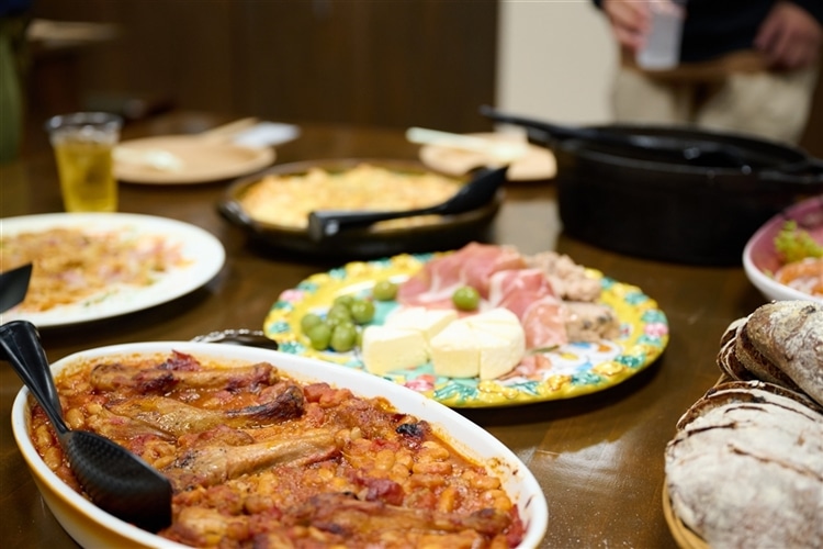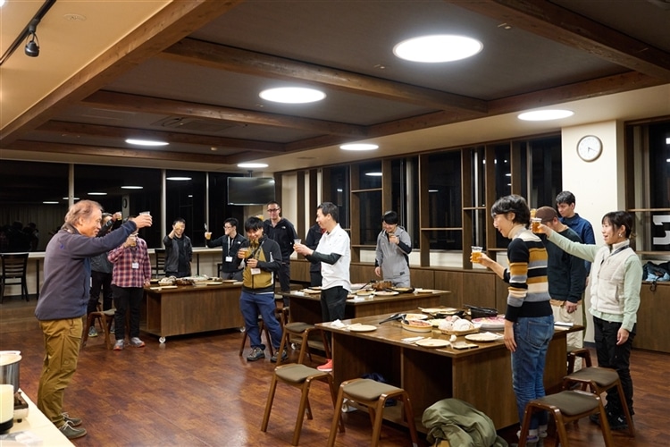 山頂から戻り、資料館でたくさんの学びを得た参加者たちは、夕方にはお腹ぺこぺこに。18時からの懇談会ではフランス料理店「ベルソー」(米原市春照)のケイタリング料理に舌鼓。「おいしいご飯もフィールドワークの1つ!」という声もあがり、それぞれのテーブルでは会話が弾み、温かな時間が流れました。