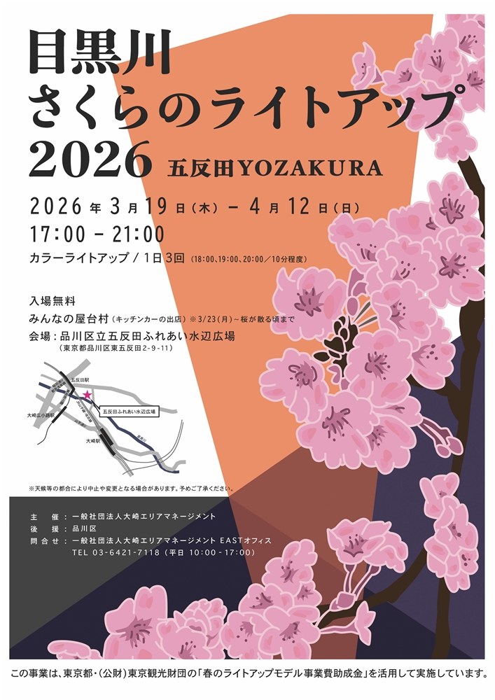 「目黒川さくらのライトアップ2026 ~五反田YOZAKURA~」を開催します。