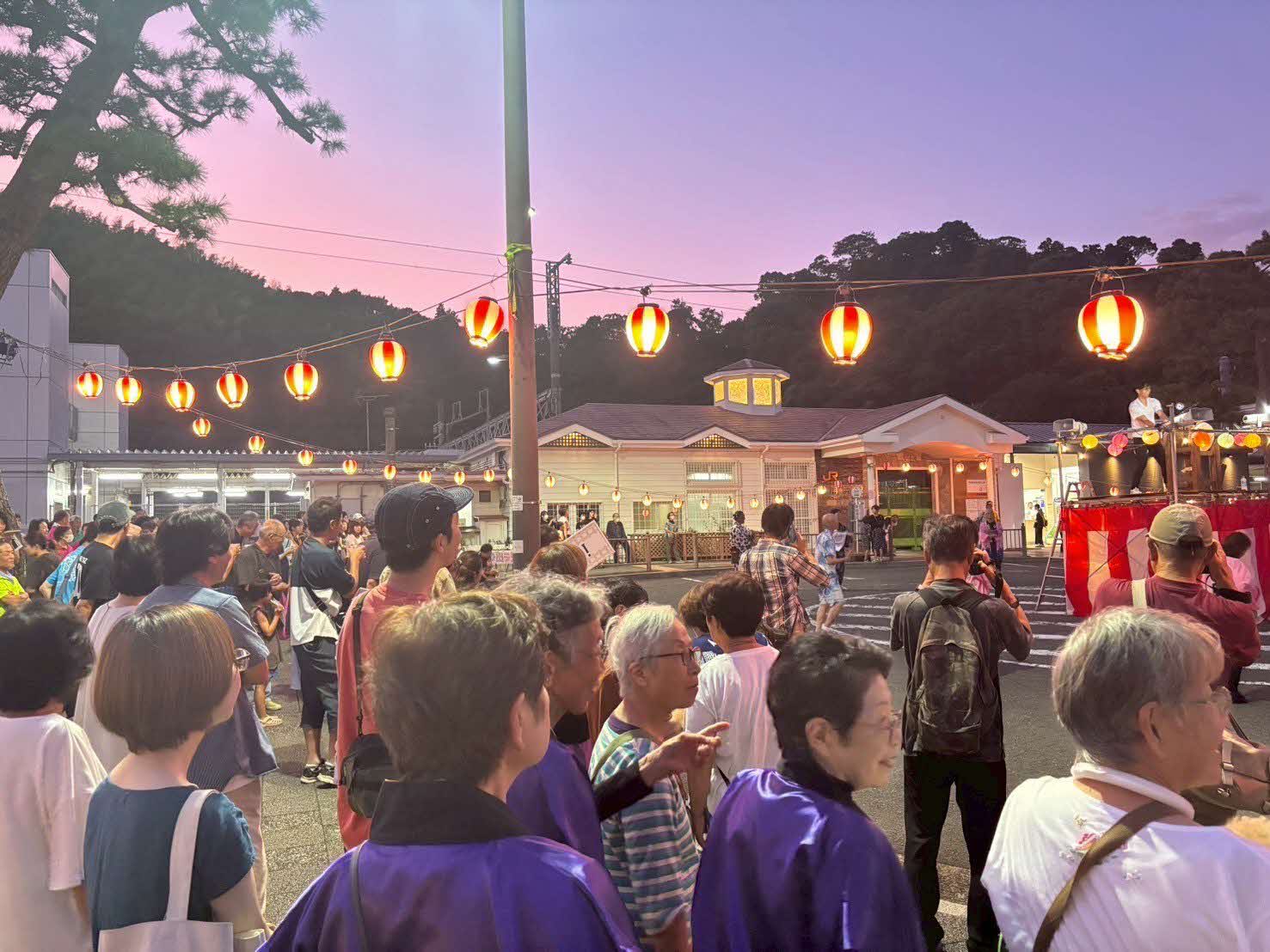 夜には駅舎の一般開放に加え、駅前でキッチンカーによる出店や盆踊り大会が開催され、慣れ親しんだ駅舎の最後の姿を見ようと多くの方が集まり、