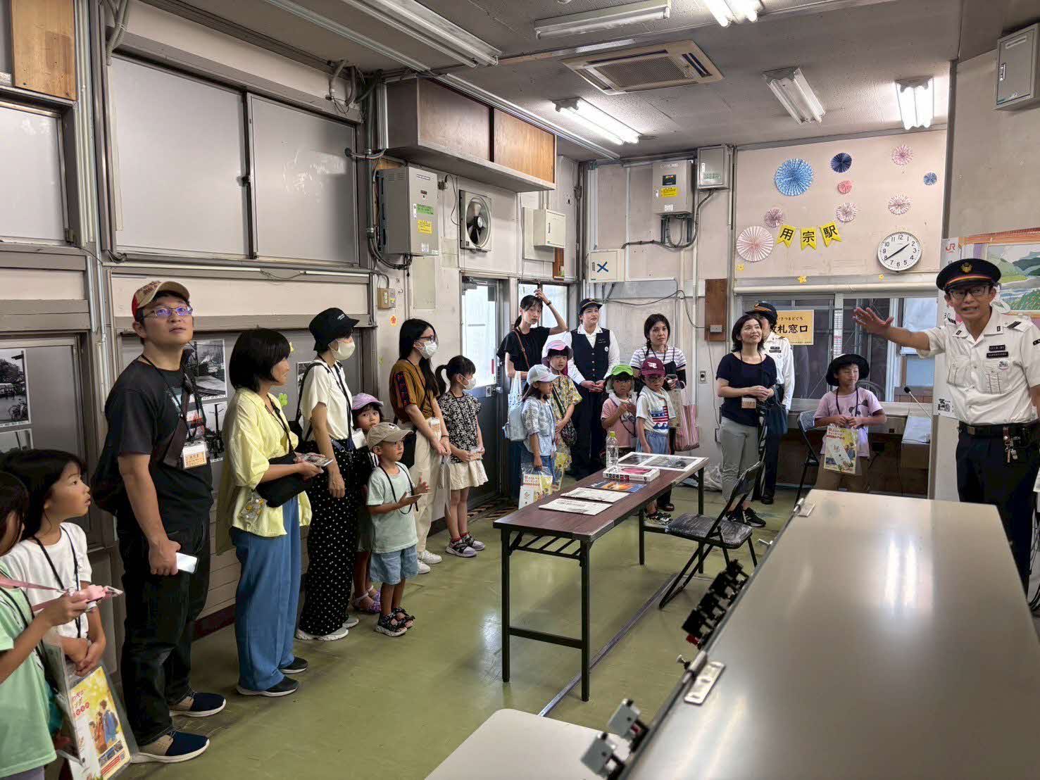 普段は公開していない駅舎の見学会を実施しました。通常見ることのできない様々な設備や制服の着用に、子供たちの目はとても輝いていました。