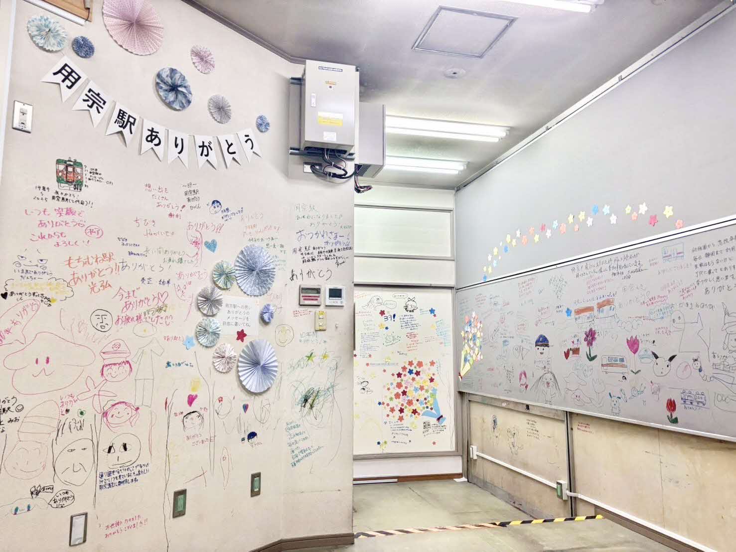 旧駅舎の壁いっぱい、皆様からのメッセージで埋め尽くされていたのです。かつて通勤で利用していたお父さん、現在通学で毎日利用している高校生、