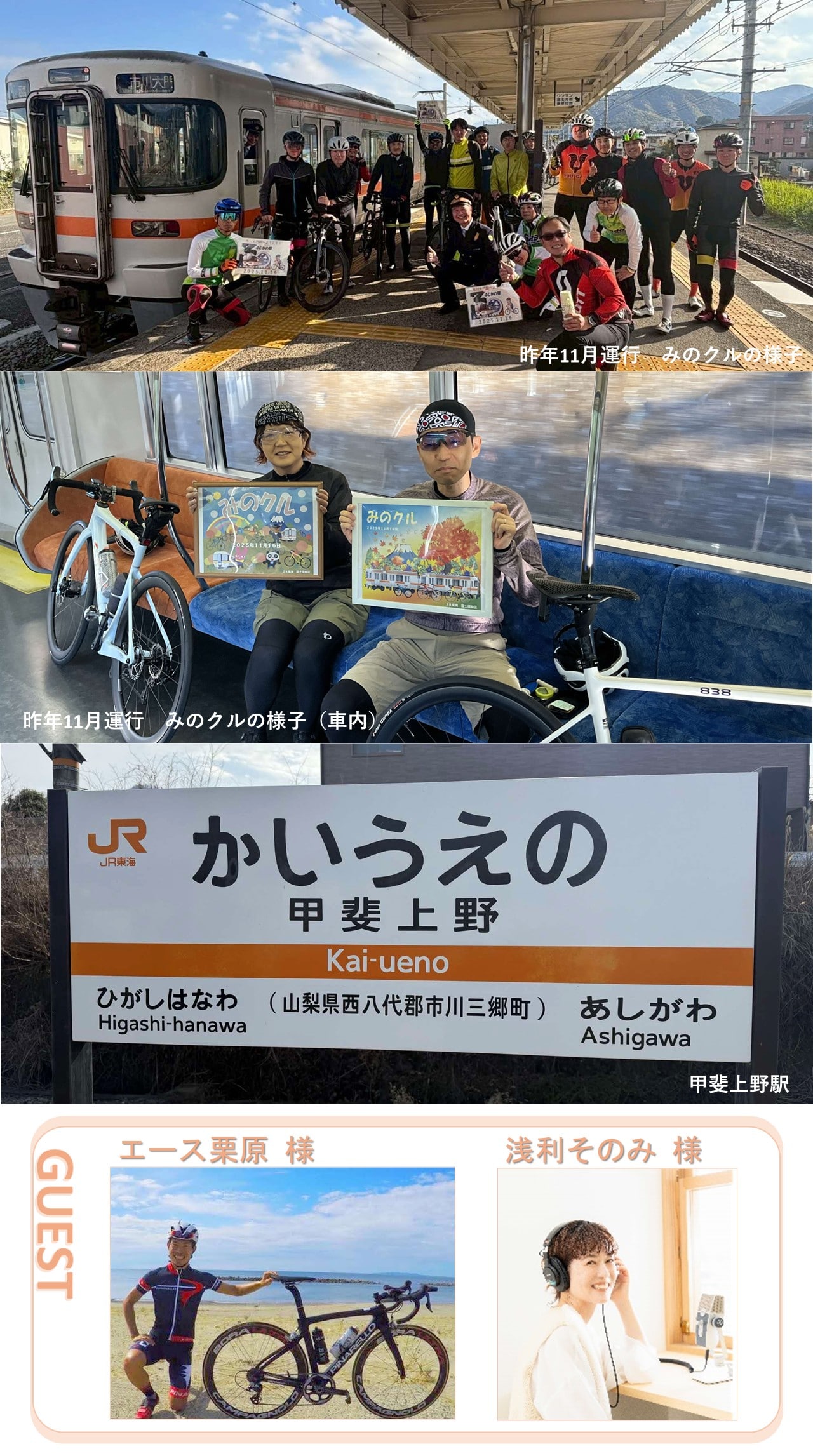 「桃と桜のサイクリング2026」が開催されており、サイクルトレイン利用者向けに、甲斐