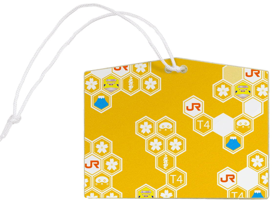 皆様の交通安全の願いを祈るお守りです。「見ると幸せになる」と言われたドクターイエロー(T4編成)の黄色のイメージでデザインしました。