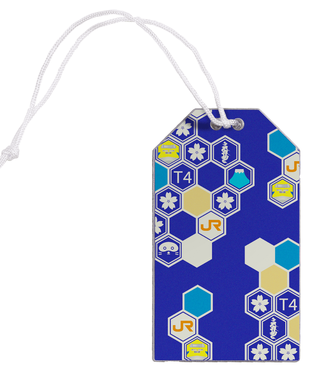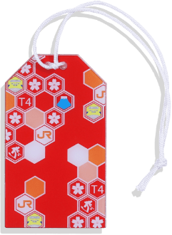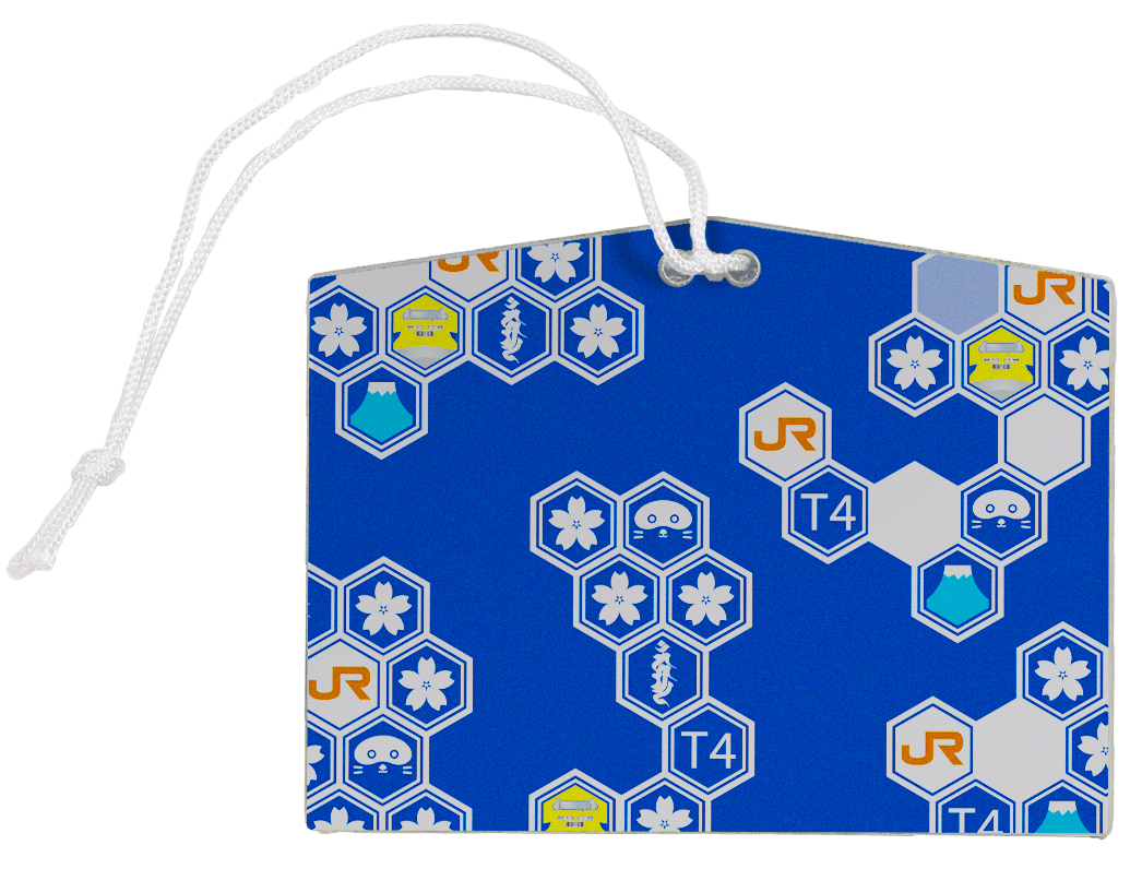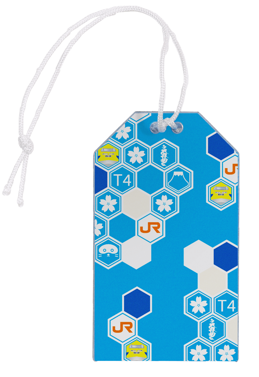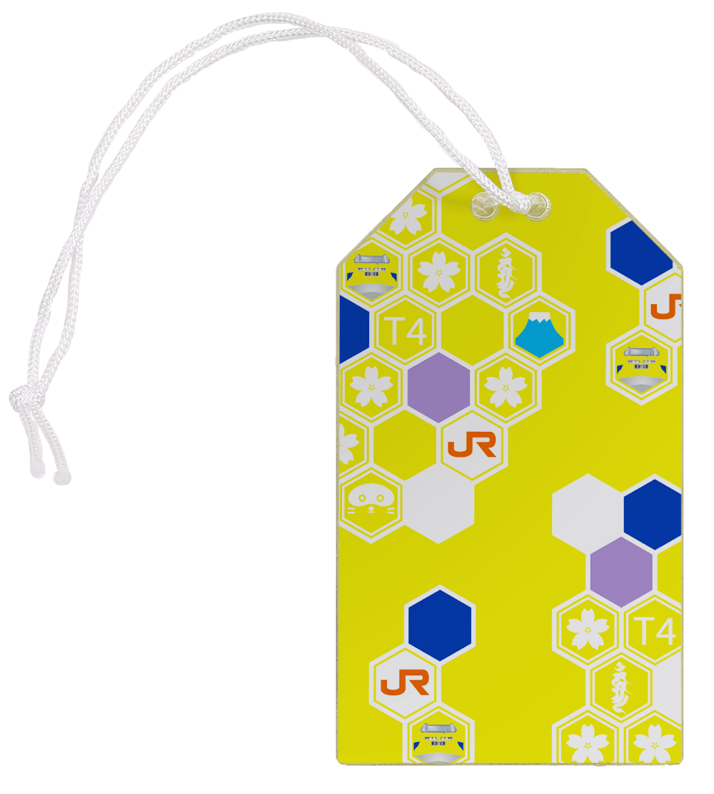 皆様の交通安全を願うお守りです。赤富士を背景に「ありがとうT4」を掲げ疾走するドクターイエロー(T4編成)をデザインしました。