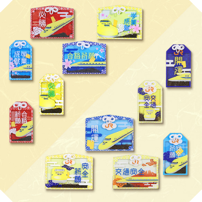 努力が報われますように。試験や受験に挑む皆様の背中を押す合格祈願のお守りです。幸運を運ぶと言われるドクターイエロー(T4編成)がやさしく、力強く見守ります。
