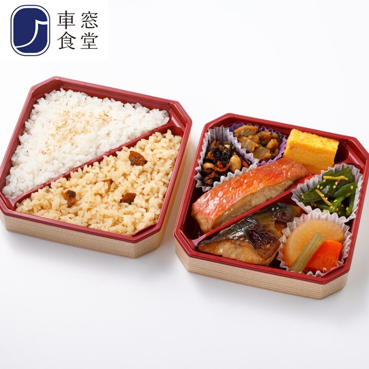 車窓から眺める“海の風景”が連想できるようにと思いを込め、1つのお弁当で“海” をテーマにした複数の食材が楽しめる、彩りよくボリューム感のあるおかずを詰め込 んだ二段仕様の特別感を感じるお弁当です。 金目鯛の煮付けと縞ホッケのみりん焼を盛りつけ、副菜は、海鮮食材の品目を増や し、魚介好きに好まれる商品にリニューアルしました。