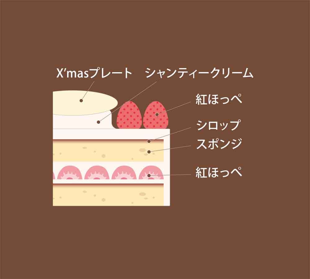 甘みと酸味のバランスがよく、芳醇で香り豊かな紅ほっぺと、しっとりしたスポンジ生地、たっぷりのクリームを重ねた、王道のクリスマスケーキ。※5号/直径15㎝