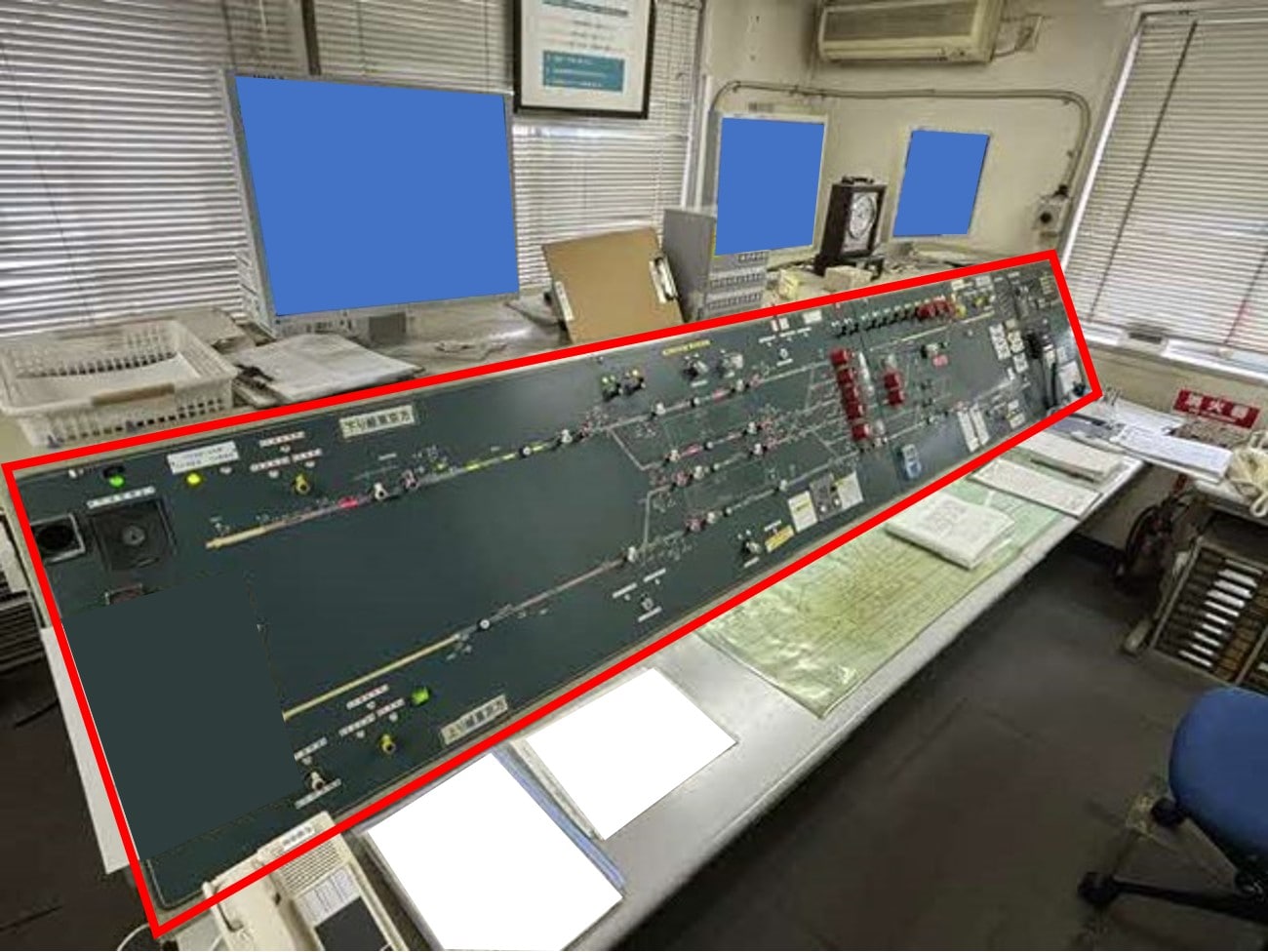 東海道新幹線の名古屋駅に実際に設置されていた連動制御盤。※不動品