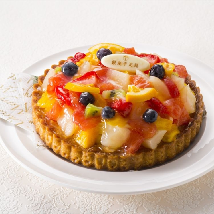 サクッとしたタルト生地と、アーモンドプードルで焼き上げた生地に、カスタード風味クリームと、色とりどりのフルーツをトッピングした、銀座千疋屋オリジナルのフルーツタルトです。
