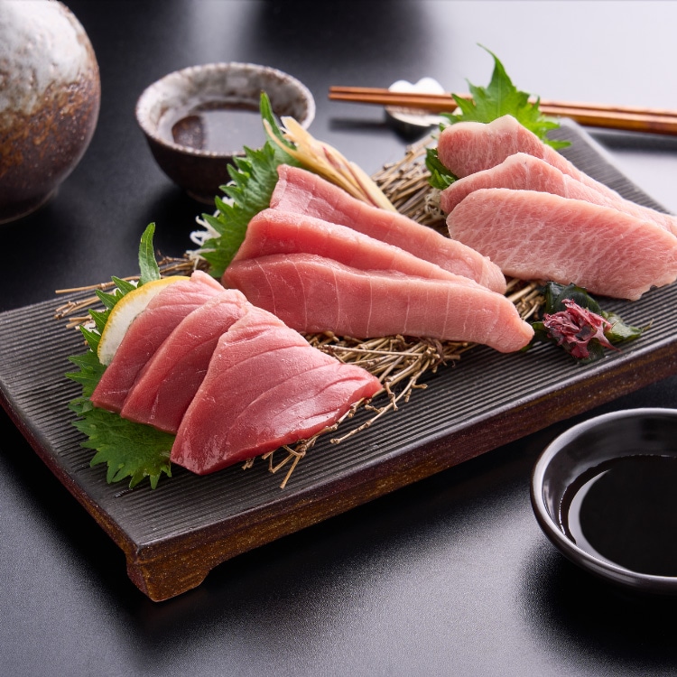 寿司ネタや刺身でおなじみのまぐろ。そんなまぐろの中でも人気の高い本まぐろの濃厚な風味を楽しめる赤身、脂の甘みと赤身の旨みのバランスが良い中トロ、濃厚なコクと甘みの大トロの柵をセットにしました。お好みの厚さに切り、醤油でお召し上がりください。
