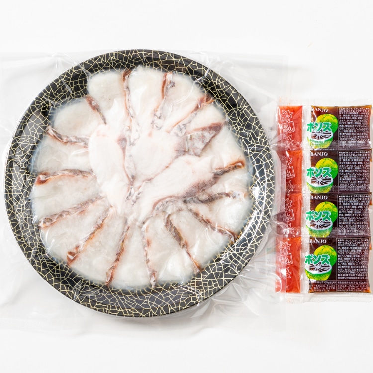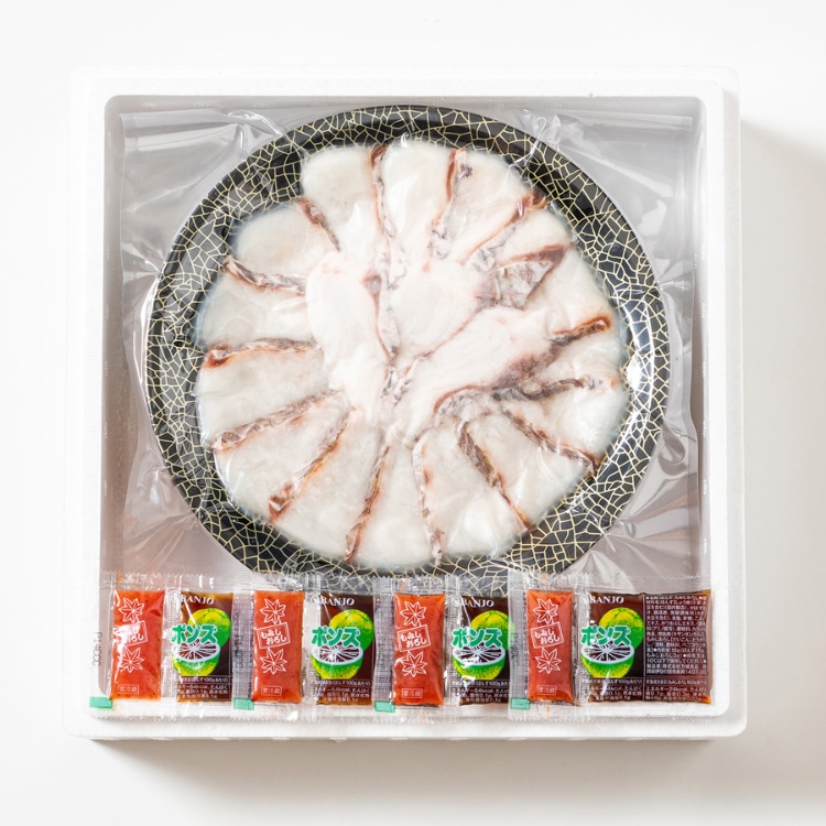 | 内容量:天然真鯛しゃぶしゃぶ用切身200g(22㎝皿盛)、ぽん酢・もみじおろし×各4