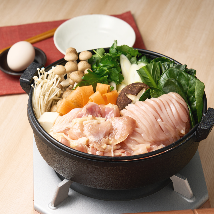 旨みと食感を存分に味わえるもも肉の切り身とむね肉のスライス、阿波尾鶏のチキンエキスを配合した特製の割り下が、深みのある味わいを演出します。