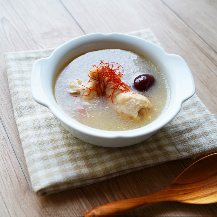 ほんのり感じる生姜やにんにくの出汁が、スープ全体に深い風味を与えます。じっくりと煮込まれたお肉は、骨からほろりと外れるほどやわらかくなり、口の中でとろけるような食感です。鶏肉の旨みがスープに溶け込み、一口ごとに豊かな味わいが広がります。湯せんで温めるだけでお召しあがりいただけます。