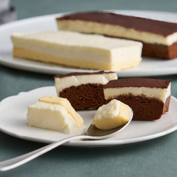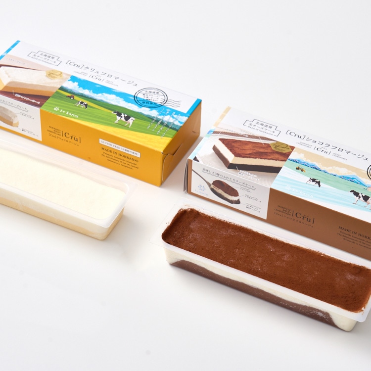 濃厚でなめらかな口どけの「クリュフロマージュ」と、カカオの深みがとろける「クリュショコラフロマージュ」。