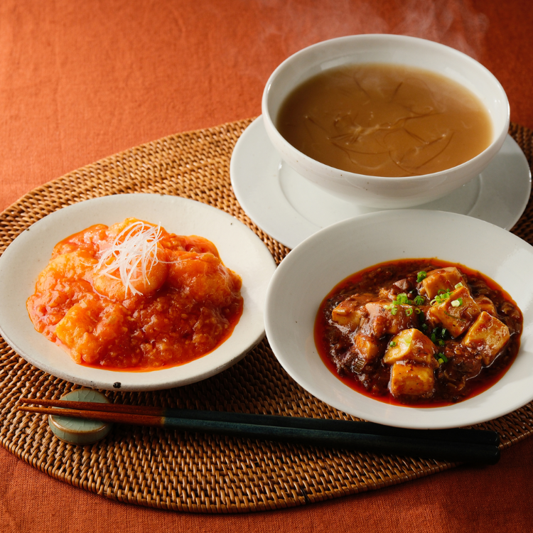 大きめの海老を使った海老のチリソース煮や、中華料理の定番として人気の高い麻婆豆腐とセットでどうぞ。