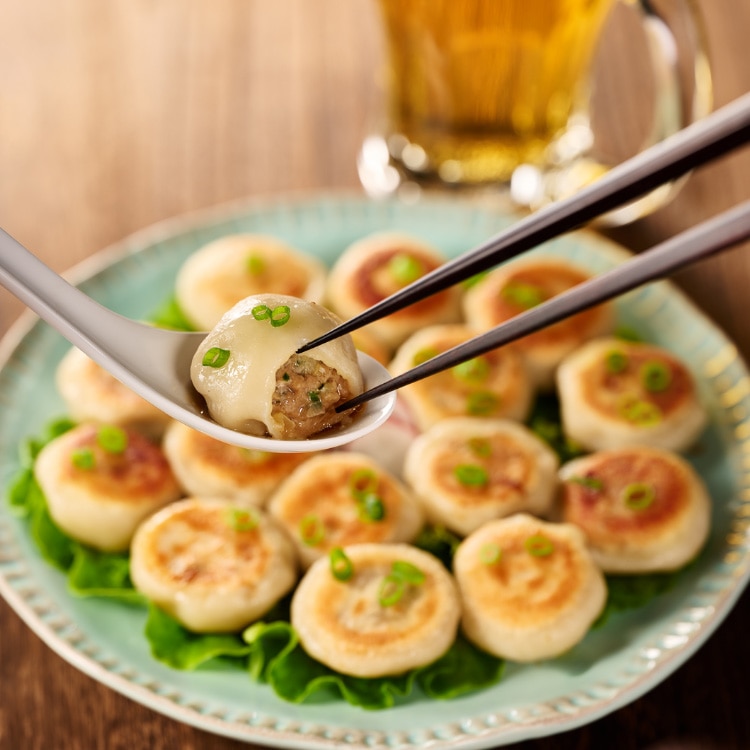 オイスターソースでコクを出し、にんにくをしっかり効かせたジューシーで黒豚の旨みが詰まった焼き小籠包です。
