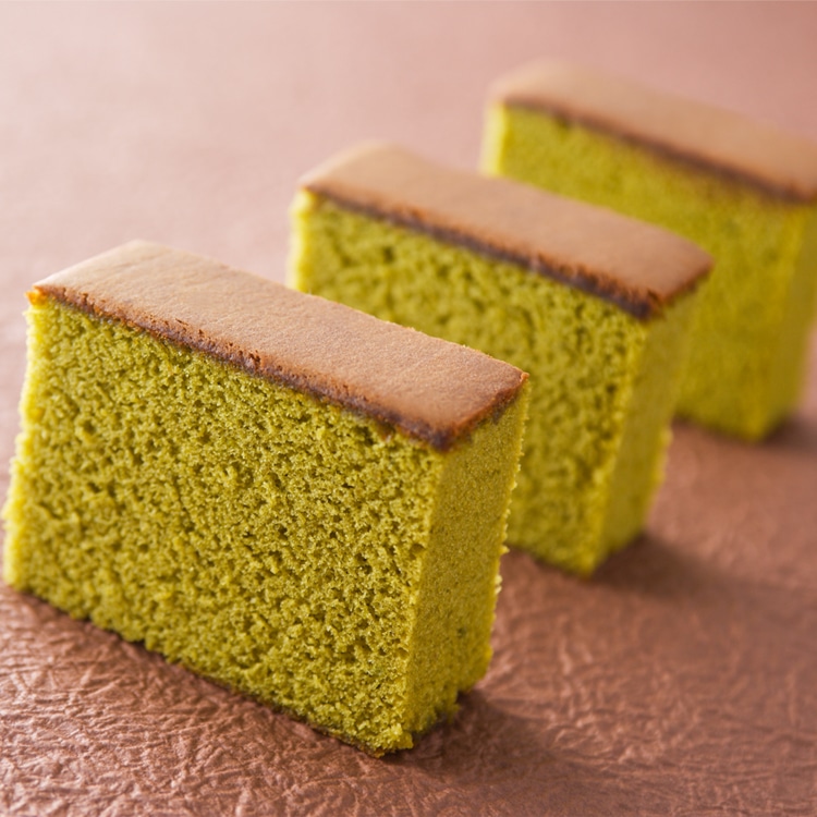 【烏骨鶏抹茶かすてら(辻利)】抹茶かすてらは京都宇治の辻利一本店の薫り豊かな抹茶を使用しました。