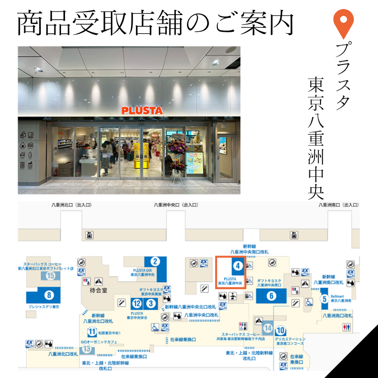 ●受取り店舗:PLUSTA東京八重洲中央(東海道新幹線 中央南口改札付近)