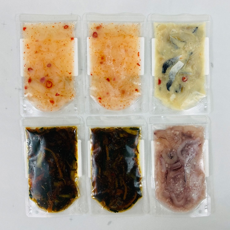 | 内容量:帆立塩辛60g×2、北の華松前55g×2、にしん切込み55g×1、いか糀造り60g×1