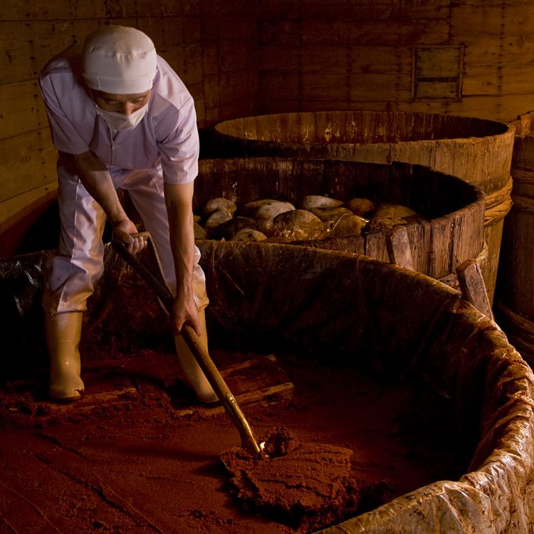 堅く結晶化してしまうこの塊は、味噌が熟成された証といえます。