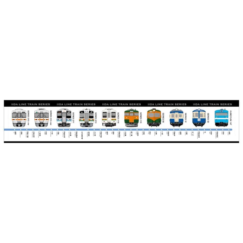 飯田線は、愛知県・豊橋駅から長野県・辰野駅まで、全長195.7kmを結ぶ壮大な路線です。 沿線には実に94の駅があり、小和田駅、田本駅、為栗駅など、「秘境駅」と呼ばれる風情ある無人駅が点在しています。そんな秘境駅をいくつも一度に巡ることができる急行「飯田線秘境駅号」も運転されるなど、鉄道ファンの間でも特別な存在として親しまれてきました。 「飯田線秘境駅号」が2010年の運転開始から15周年を迎えることから、飯田線がもつ唯一無二の魅力をより多くの方にどこか懐かしく、そして静かに心を揺さぶる__そんな飯田線の世界をマフラータオルにしました! ぜひお手元でもお楽しみください。
