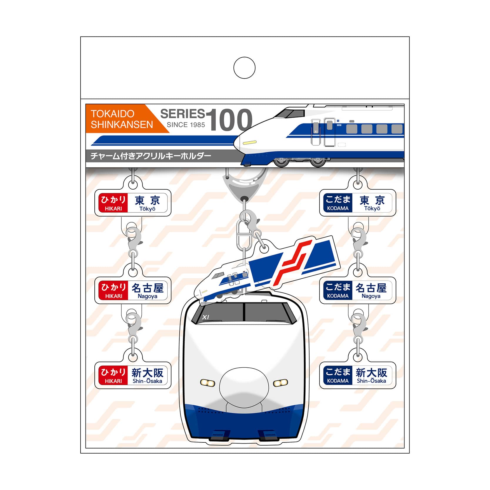 先頭車両をデザインしたキーホルダーに、100系新幹線の個性を表現したチャームが付いた、鉄道ファン必携のアイテム。 手のひらサイズのコレクションです。