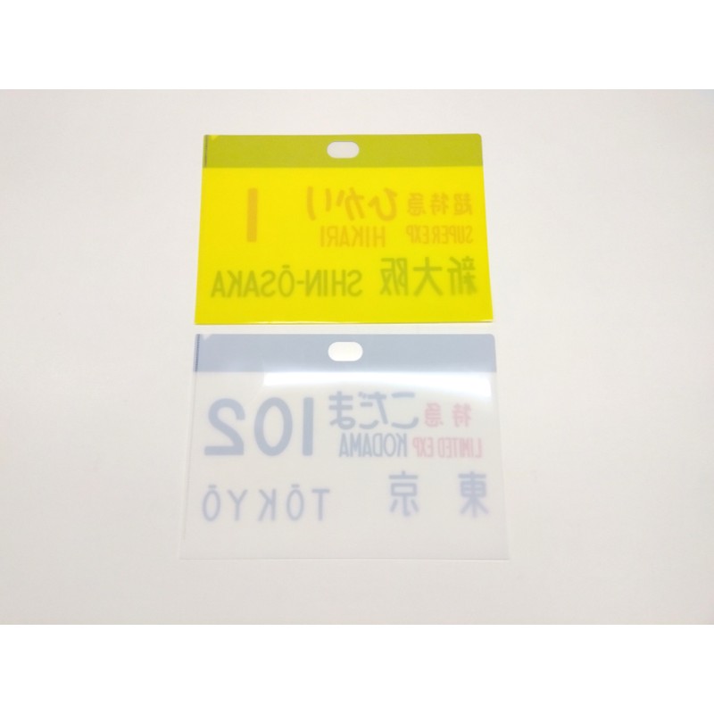 東海道新幹線開業時に0系新幹線で使用された行先標(サボ)をモチーフにデザインしたクリアファイルです。