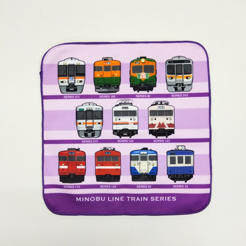 特急ふじかわ号と、身延線を走り抜けた車両たちをデザインに採用したタオルハンカチです。