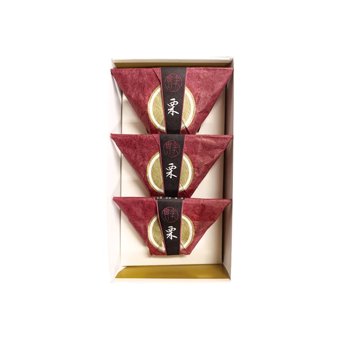 栗一粒を丸ごと小豆羹で包み込みました。栗と小豆の調和の妙味をご賞味下さい。