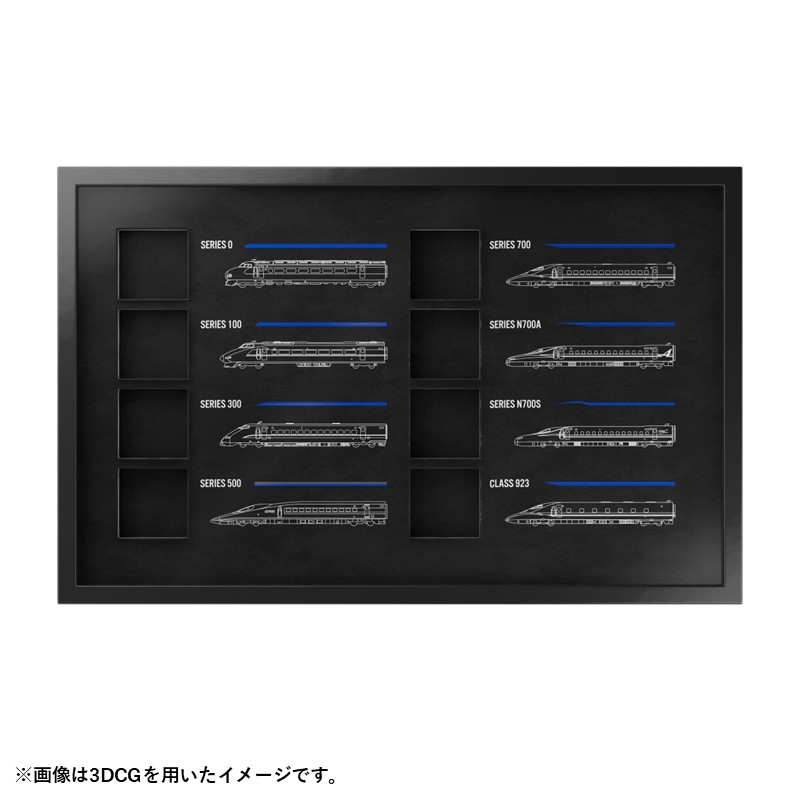 今後登場予定の商品を含む全8種類の「新幹線 純金ミニフィギュア」を美しく収納できる本企画のためだけに設計された特別仕様のディスプレイケースです。