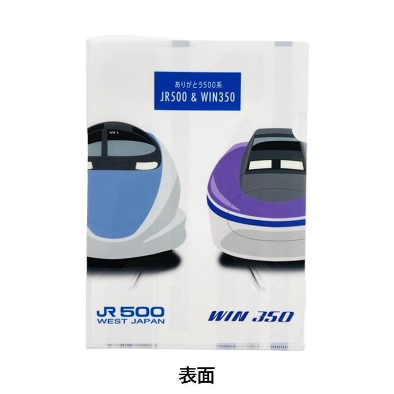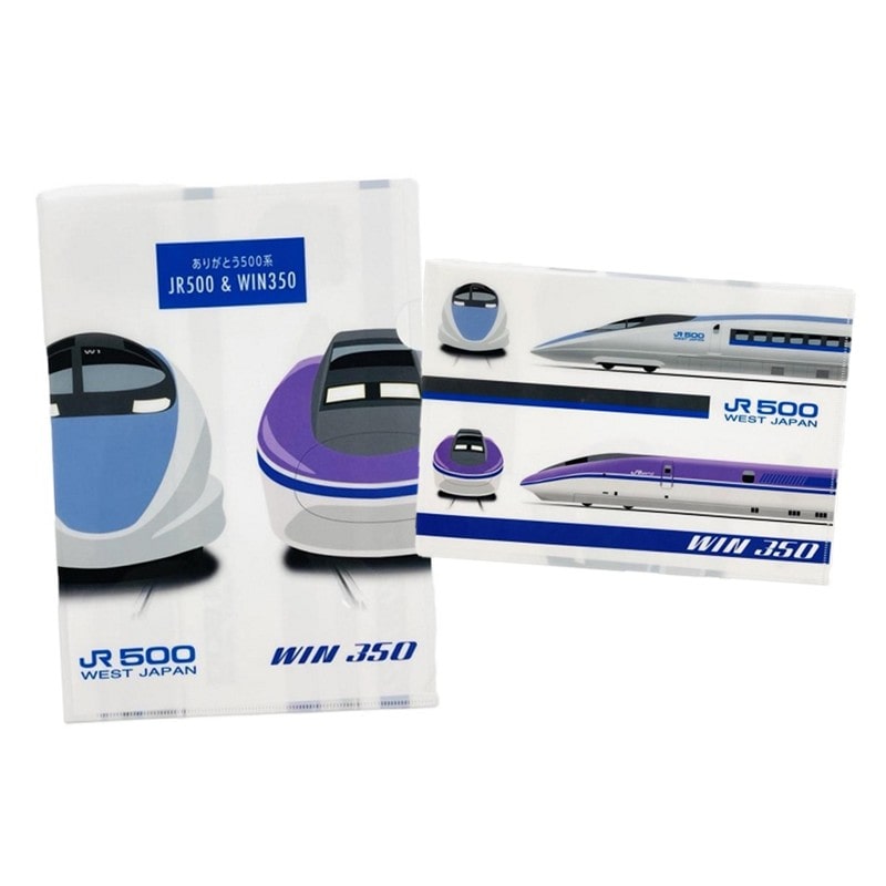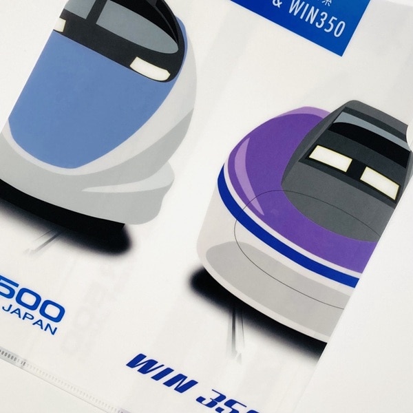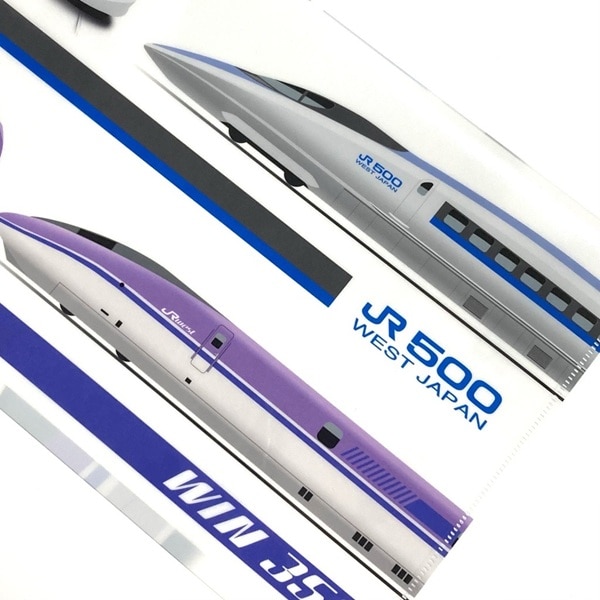 引退を発表した"500系新幹線"と、500系新幹線の原型となった試験車である"WIN350"のイラストのクリアファイルです。