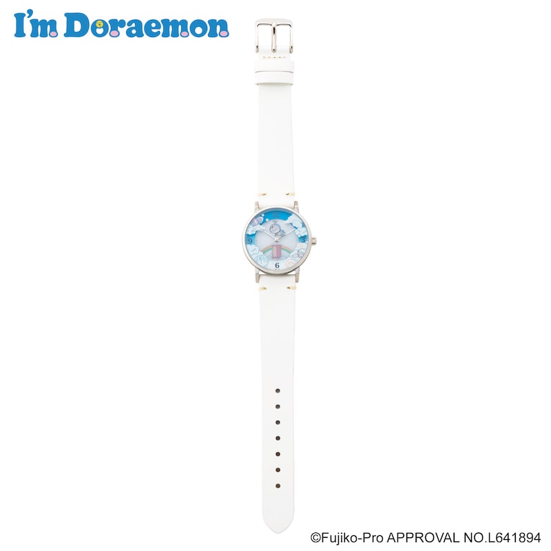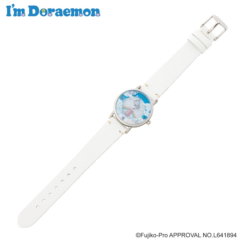 キャラクターアートが文字盤にあしらわれた「アイムドラえもん」シリーズにソーラーウォッチモデルが登場。 身につけやすい薄型&軽量ケース。ドラえもんが雲の上で散歩する様子が立体的に描かれたキュートな文字盤。空を散歩するドラえもんや、どこでもドア・雲ねんど・きんとフードなどのひみつ道具が風防ガラスと文字盤に描かれることによって、時計の中に奥行きある世界観が表現されています。作品のワンシーンを切り取ったような、癒しを与えてくれるアイテムです。 ソーラームーブメントはフル充電で約4ヶ月稼働。太陽光や蛍光灯が発する紫外線で発電するソーラー充電式ウォッチは普段使いしているだけで充電されるので、充電や電池交換のタイミングを気にせずにお使い頂けます。