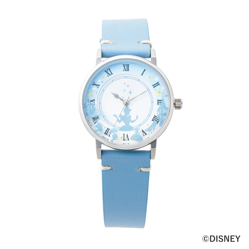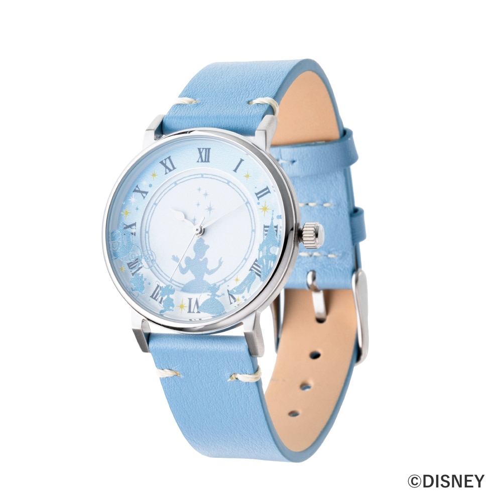 ディズニープリンセス達の物語を身近に感じられるソーラーウォッチが登場。 『美女と野獣』『シンデレラ』『ラプンツェル』『リトル・マーメイド』 ディズニーを代表するプリンセス達の物語の4作品をドラマチックなデザインに落とし込みました。 シンデレラのシルエットをダイヤルの中心にあしらい、ガラス風防には物語に登場するかぼちゃの馬車やガス、ジャック、メアリー、ガラスの靴がにぎやかに散りばめられた華やかなデザイン。コーディネートのワンポイントになる、爽やかなペールブルー色のベルトをセットに。 信頼のセイコーエプソン製ソーラームーヴメントは、フル充電で4ヶ月稼働可能。太陽光に2分かざすだけで1日中使えます。