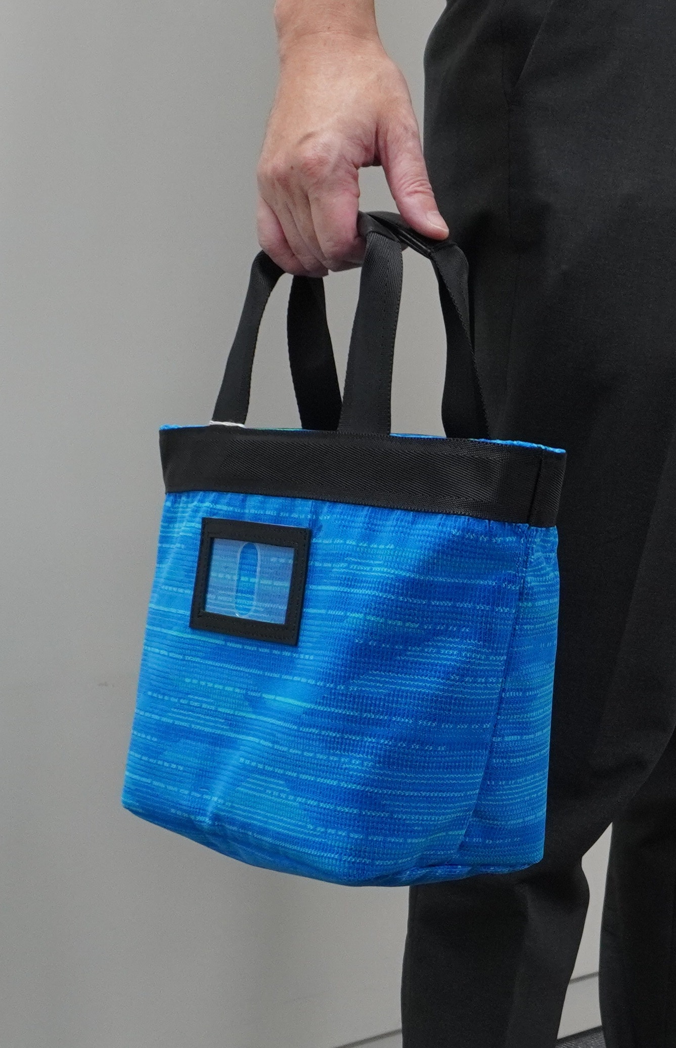 東海道新幹線N700Sの普通車で実際に使用されていたモケット(シート座席生地)をアップサイクルしたミニトートバッグです。