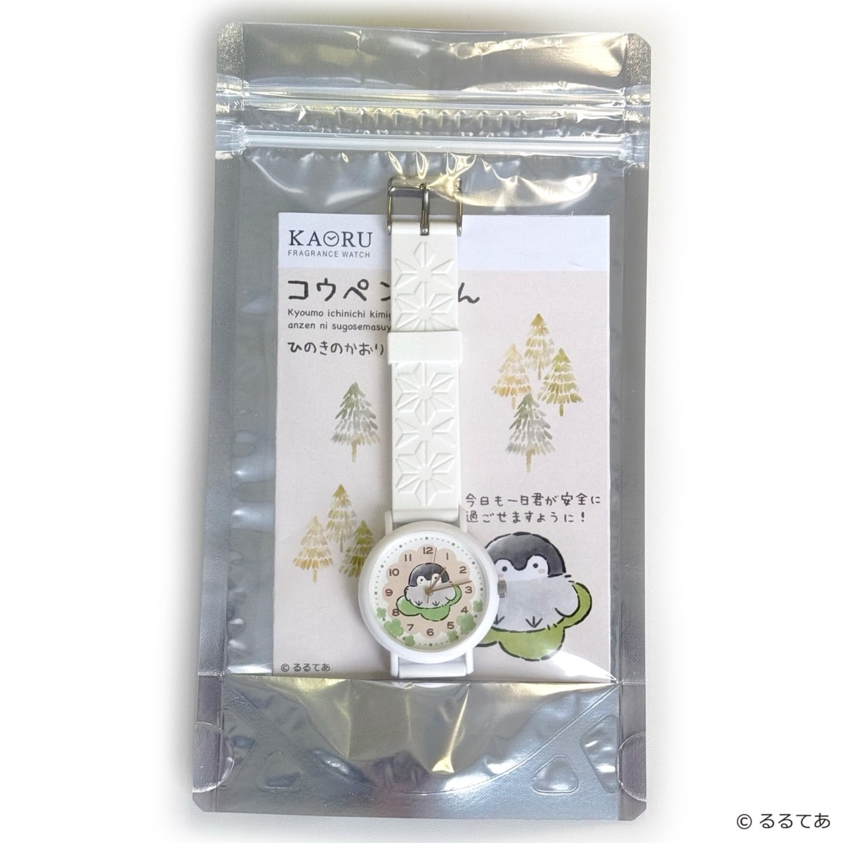 - 【コウペンちゃん:キャラクター紹介】 いっぱいいて、どこにでもいる、日常の些細なことを肯定してくれるコウテイペンギンのあかちゃん「コウペンちゃん」。可愛らしい仕草と優しい言葉に癒される、素朴なタッチのイラストはSNSを中心に発信され一躍人気となったキャラクターです。 ◯ほんのり香りをまとう、特殊加工ベルト KAORUを包む優しい香りは特殊加工を施したベルトにより発生しています。 ※日常使いで香りは6ヶ月ほどの持続力です(使用環境により変動) 香りが弱くなったらお手持ちの香水などを馴染ませてリユースできます。