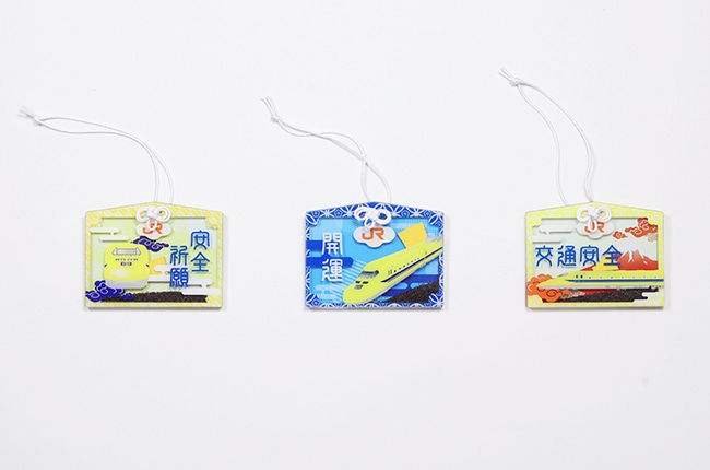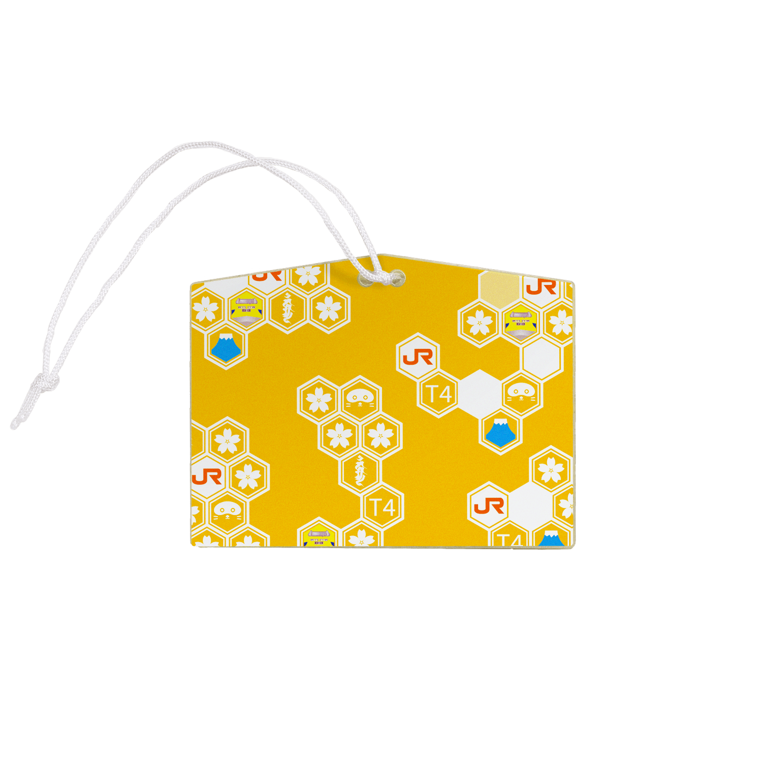 ・縁起がよいとされる亀甲文様に、富士山や、祈祷を行った狸谷山不動院の梵字・狸のイラストやドクターイエローモチーフのピクトグラム等を散りばめております。