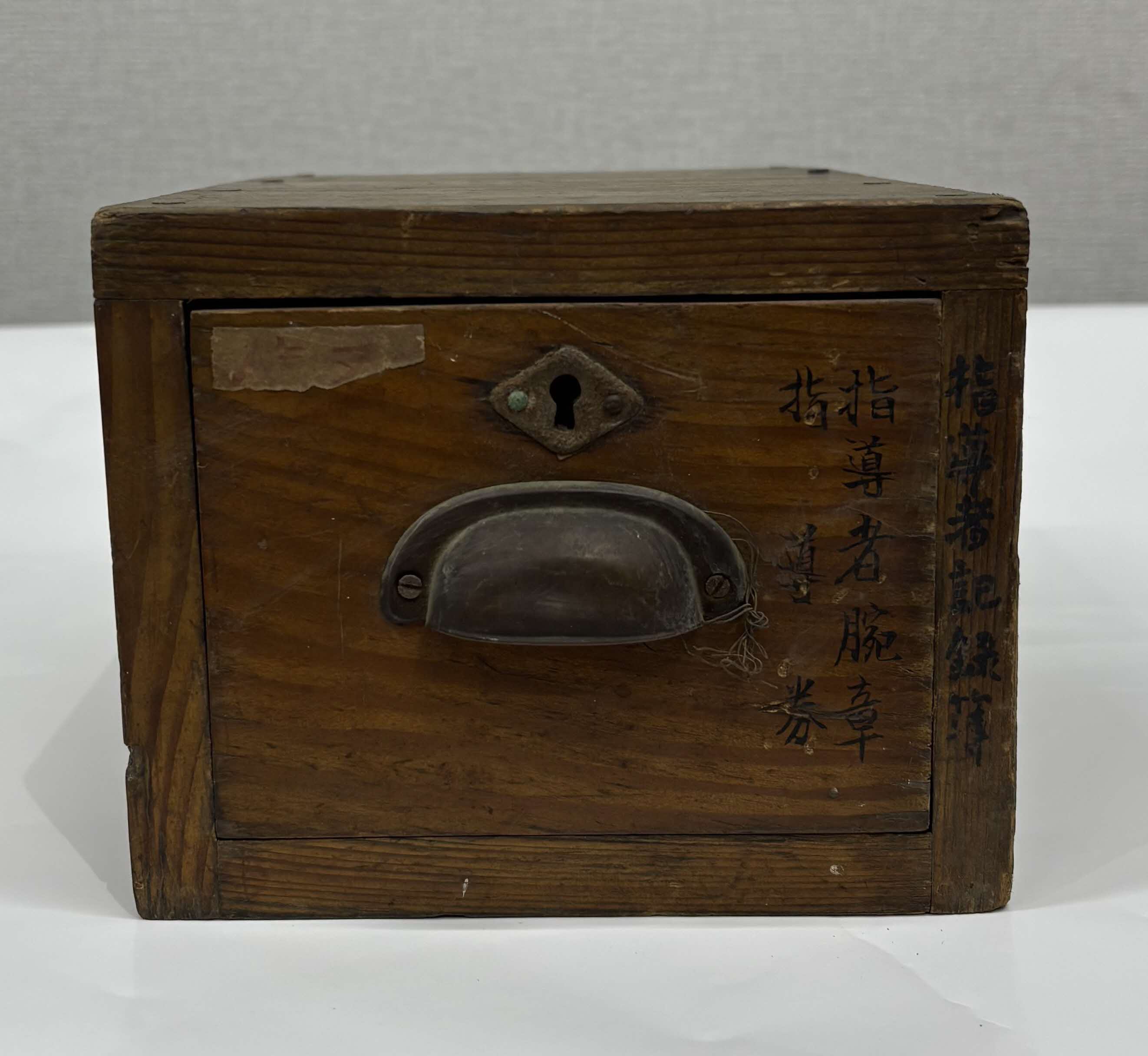 指導者腕章等を収納するための箱。擦れや塗装剥がれがあります。