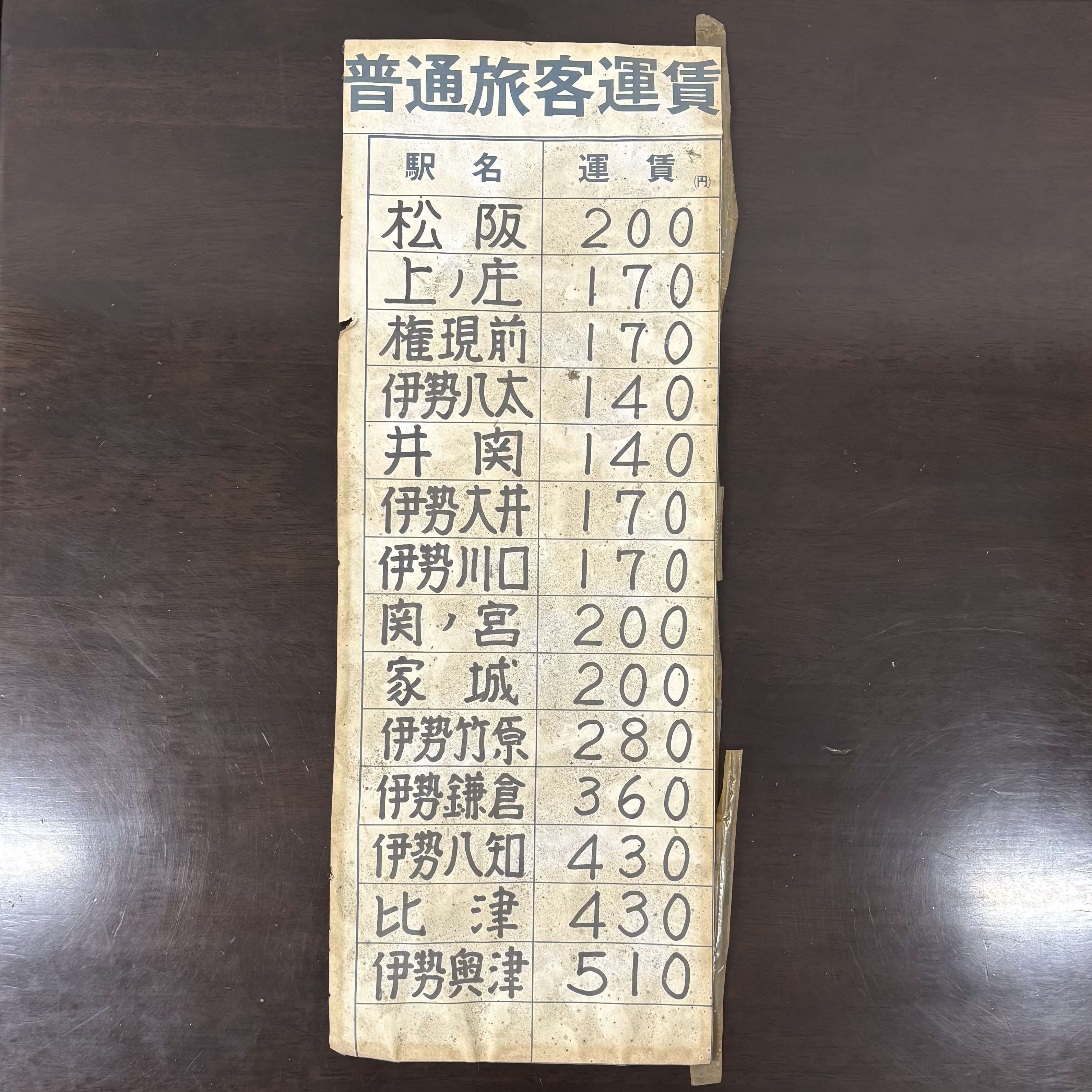 一志駅で使われていたと思われる手書きの紙製メモです。