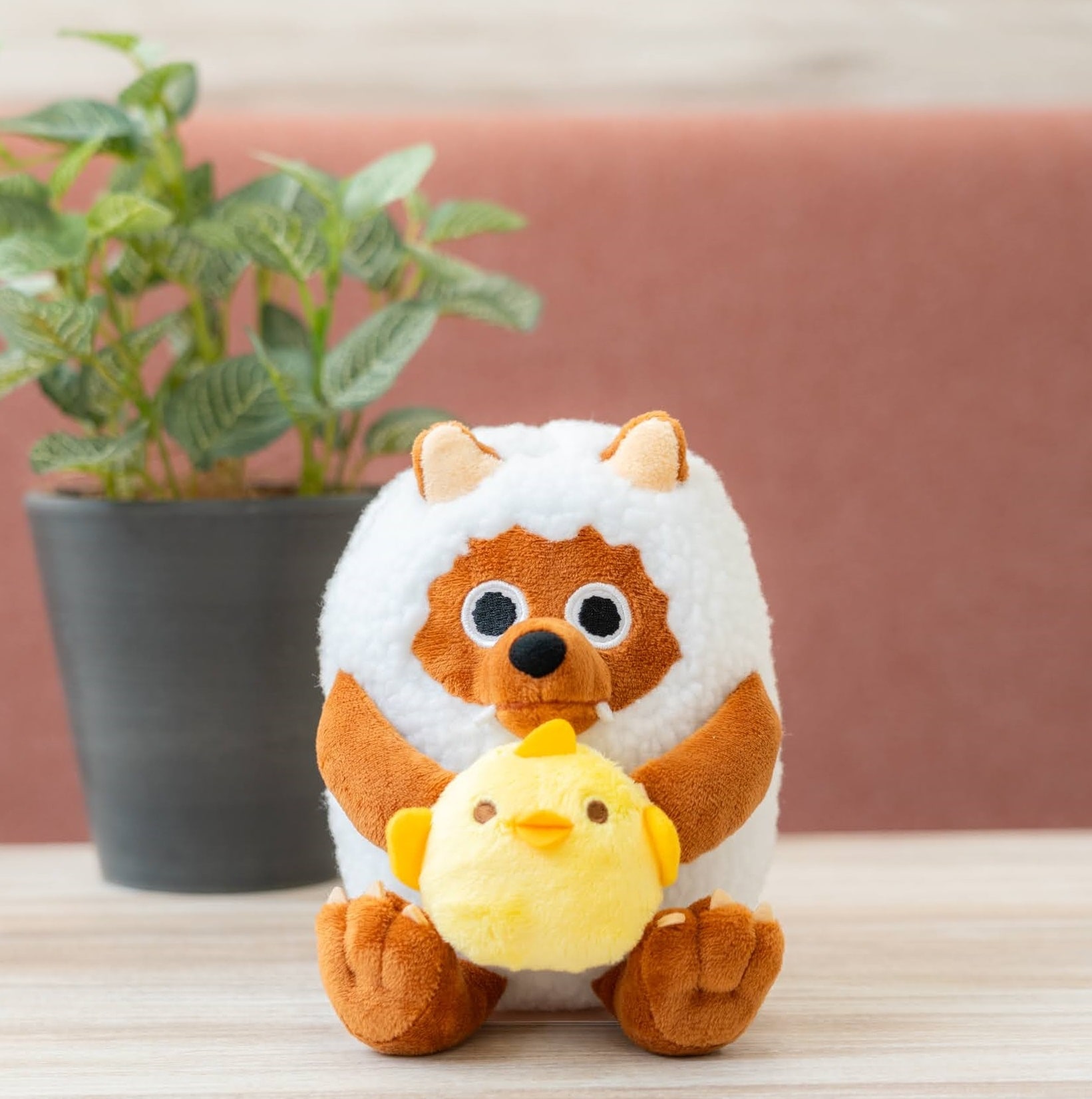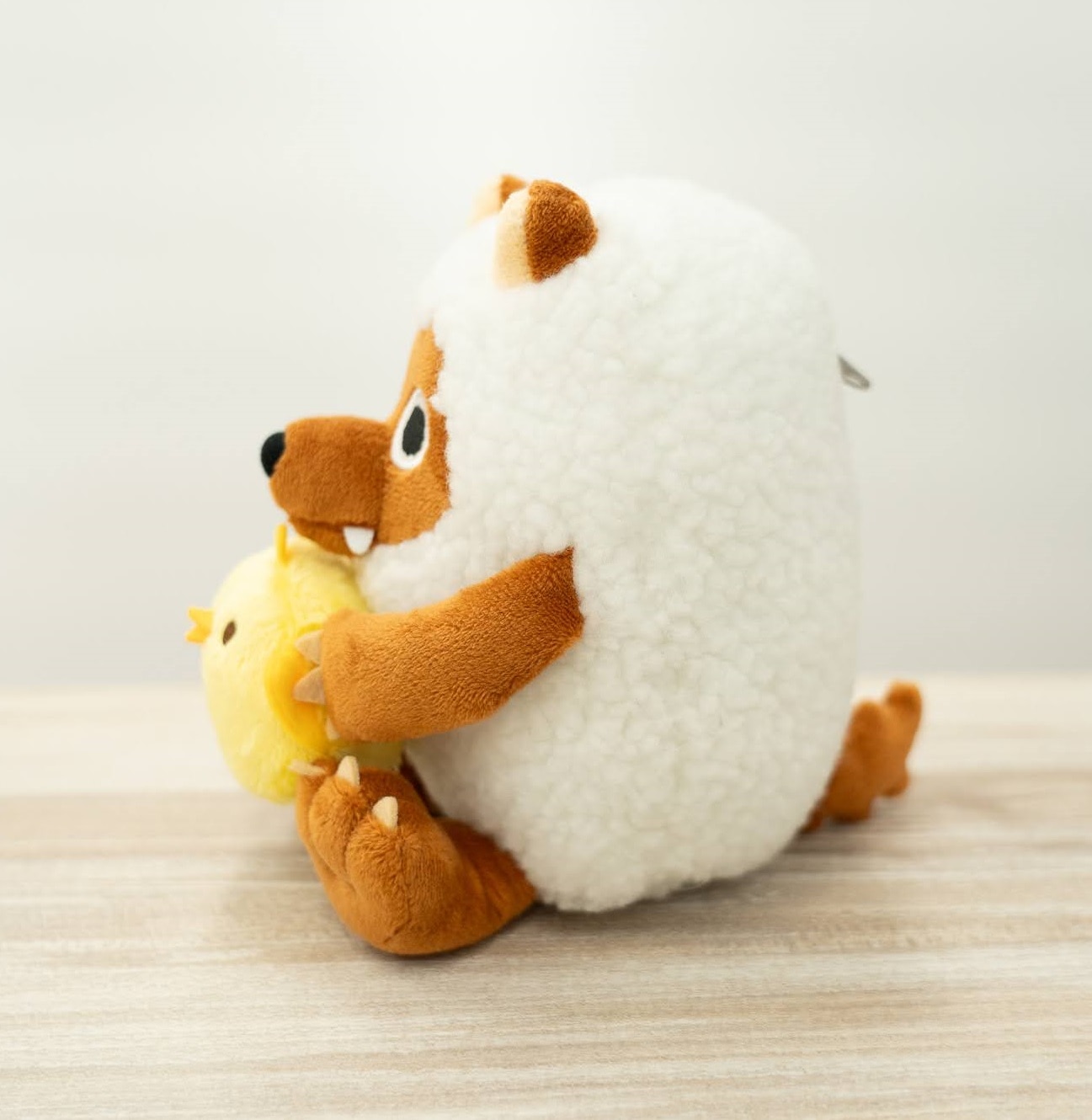 ウルフィがぴよりんをぎゅっと抱っこしている姿は、眺めているだけで癒されます。