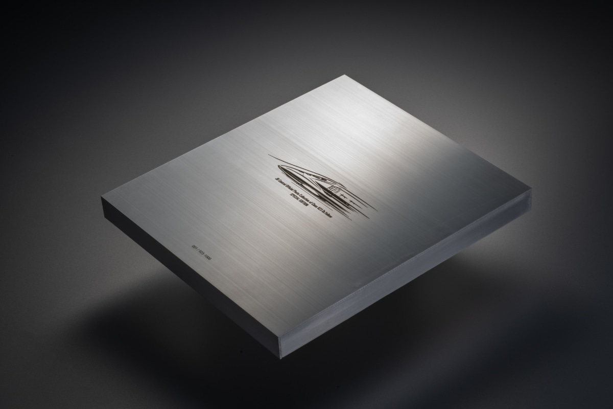 「ありがとうT4 JR東海公式 923形ドクターイエロー引退記念写真集」にドクターイエローT4由来の再生アルミで仕立てた特製ケースをセットで923個限定販売。ケースの蓋には、T4自体もデザインされた福田哲夫氏の描き下ろしデザインとシリアルナンバー(No.1~No.923)を刻印しています。