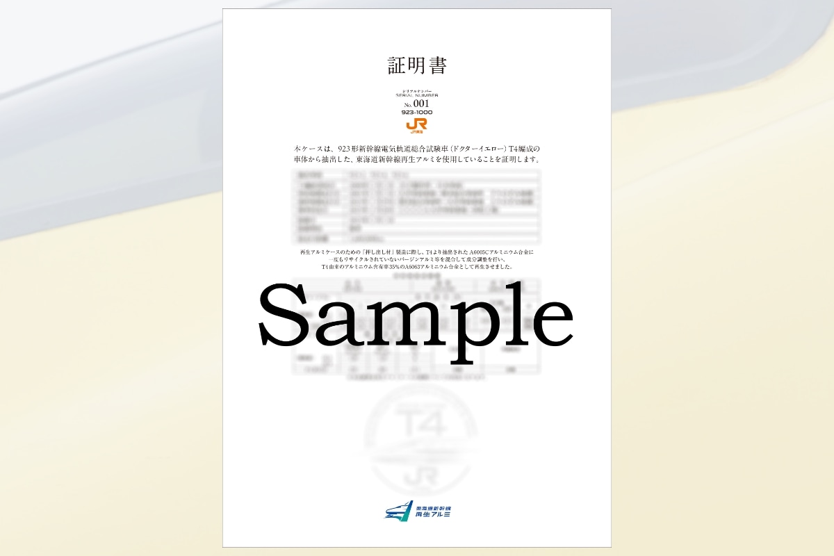 JR東海公式「再生アルミ使用証明書」