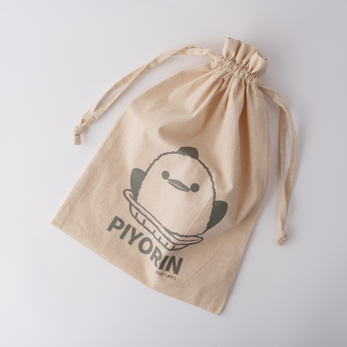 ぴよりんといっしょにおでかけ気分♪ 少し大きめサイズ(縦37cm × 横26cm)のコットン巾着です。