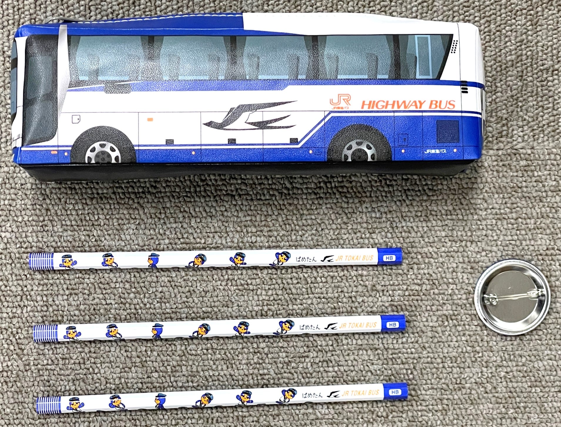 ペンケース(高速バス)・ばめたん鉛筆(3本) ・シークレットデザイン「合格祈願(缶)バッチ」