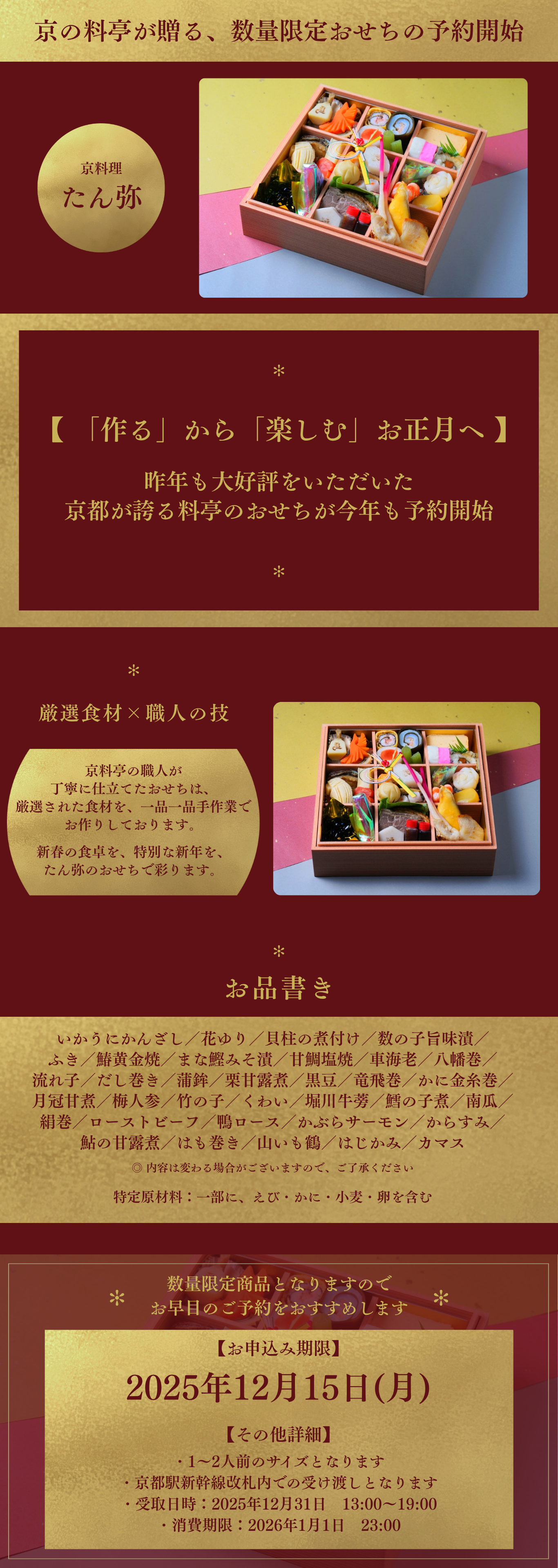 【数量限定】京料理たん弥より迎春を彩る豪華おせちが予約開始!